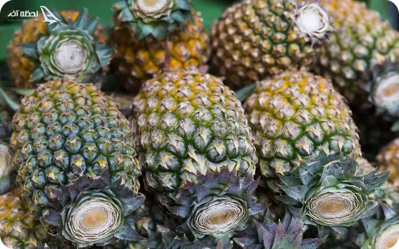 میوه آناناس از شناخته شده ترین میوه های تایلند است که افراد بسیاری به آن علاقه مند هستند. این میوه شیرین و آبدار در تمامی فصول سال در کشور تایلند رشد می کند و در بسته بندی های مختلفی مثل میوه آناناس، کمپوت آناناس یا آبمیوه به سراسر دنیا صادر می شود. آناناس دارای مواد مغذی همچون کربوهیدرات، فیبر، بروملین، پروتئین و انواع ویتامین ها از جمله ویتامین های A، C، B5 و B6 بوده و خواص درمانی فراوانی دارد. این میوه گرمسیری در تقویت سیستم ایمنی بدن بسیار موثر است و علاوه بر این در درمان مشکلاتی نظیر آلرژی، آسم، سینوزیت، التهاب لثه، فشار خون بالا، مشکلات گوارشی، حالت تهوع، آکنه و ریزش مو نقش به سزایی را ایفا می کند.
