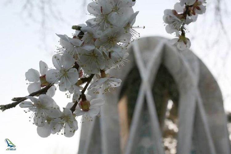 سرتا سر آرامگاه پر ازدرختان همیشه سبزکاج است، وی در کتابی به نام چهار مقاله ی نظامی عروضی گفته است مزارش در جایی باشد که در فصل بهار مملو از گل و شکوفه باشد، به همین جهت مهندس سیحون جایی را انتخاب کرد که 3 متر پایین تر از باغ درخت زردآلو قرار دارد که باعث می شود در فصل بهار شکوفه های زردآلو به روی آرامگاه ریخته شود، به این صورت به آرزوی این مرد بزرگوار عمل شده است.