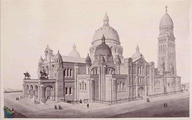 در سال 1800 مسابقه ای برای طراحی کلیسای جدید برگزار شد که از میان شرکت کنندگان، طرح جالب و منحصر به فرد "پل آبادی" انتخاب شد. معمار کارآزموده این کلیسا عملیات عمرانی کلیسا را از سال 1875 آغاز نمود و در سال 1914 ساختمانی چنین زیبا را تکمیل نمود. او این ساختمان را از یک نوع سنگ سفید به نام "چاتی لندن" ساخته که علی رغم زیبایی های ظاهری، به دلیل داشتنِ کلسیت، در هوای مرطوب پاریس تغییر رنگ داده و کمی مایل به قهوه ای شده است. بعد از به اتمام رسیدن مراحل ساخت کلیسا، دوران جنگ جهانی اول ادامه داشت، از همین رو افتتاح آن را تا سال 1919 (پایان جنگ) به تعویق انداختند.
